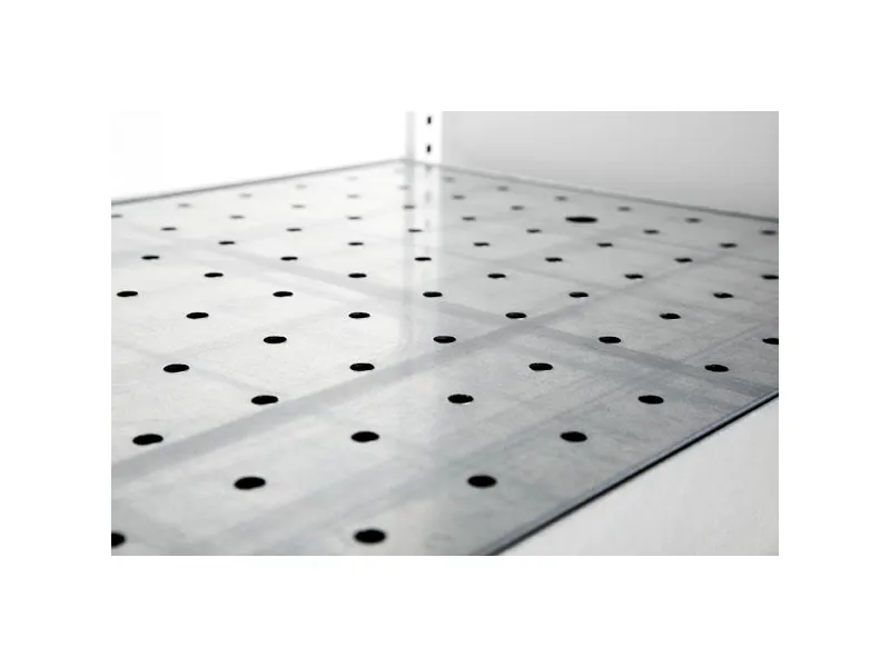 Dørene har skjulte hængsler og er udstyret med cylinderlås. Olieskabet leveres i helsvejset udførelse, komplet med 2 flytbare, galvaniserede hylder. Skabet er miljørigtig pulverlakeret gråhvid RAL 9002, dørene er blå RAL 5005. Hyldernes dybde er mindre end skabets dybde, således at du kan placere liggende plastbeholdere med kran. I skabets bund er der placeret et udtræksbart opsamlingskar, med kapacitet på 50 liter. Skabet har luftventiler og Ø100mm ventilationsstuds i toppen, for tilkobling til ekstern ventilation.