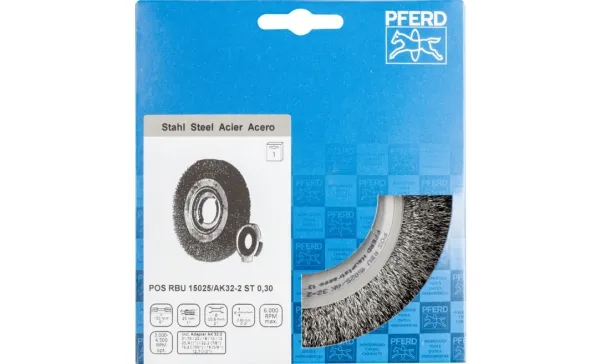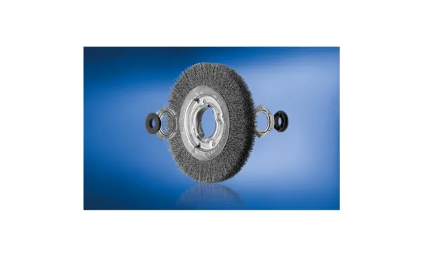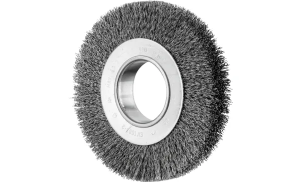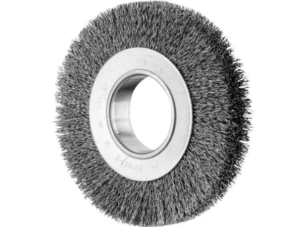 Pos rundbørste bred, ikke-overtrukket RBU dia. 150 x 25 mm variabel boring ståltråd-dia. 0,30 til slibeblok 1 Fremragende til mellemtunge kontorarbejder på store emner inden for håndholdt og maskinel anvendelse. Udviklet til universel anvendelse inden for værkstedsområdet.