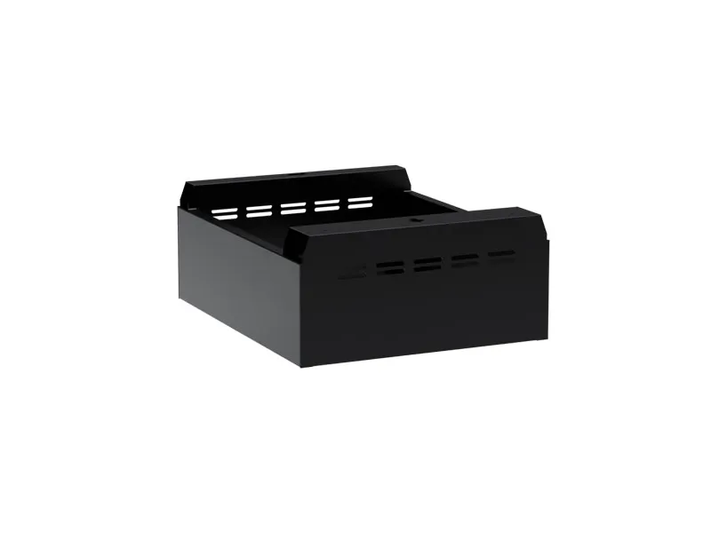 Sokkel for garderobeskab med bredde 400 mm og dybde 550 mm. Soklen giver en pæn afslutning mod gulvet, letter adgangen til skabet og har en højde på 150 mm, som lægges til garderobeskabets højde. Leveres som standard pulverlakeret i sort RAL 9005.