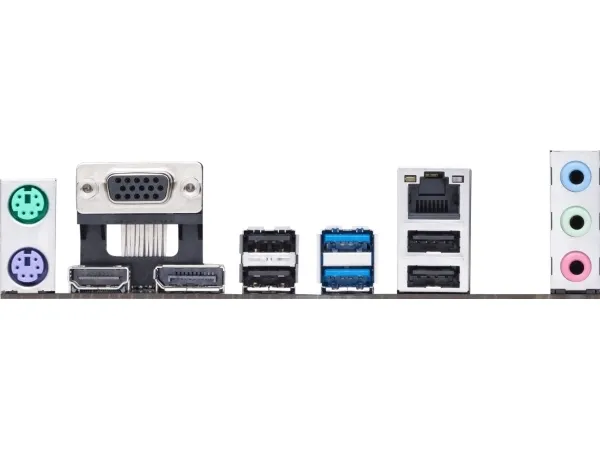 1 x HDMI 1 x DisplayPort 1 x VGA 2 x USB 3.2 Gen 1 1 x PS/2-mus 4 x USB 2.0 1 x PS/2-tastatur 1 x lydinnlinje - minijakk 1 x lydutlinje - minijakk 1 x mikrofon - minijakk