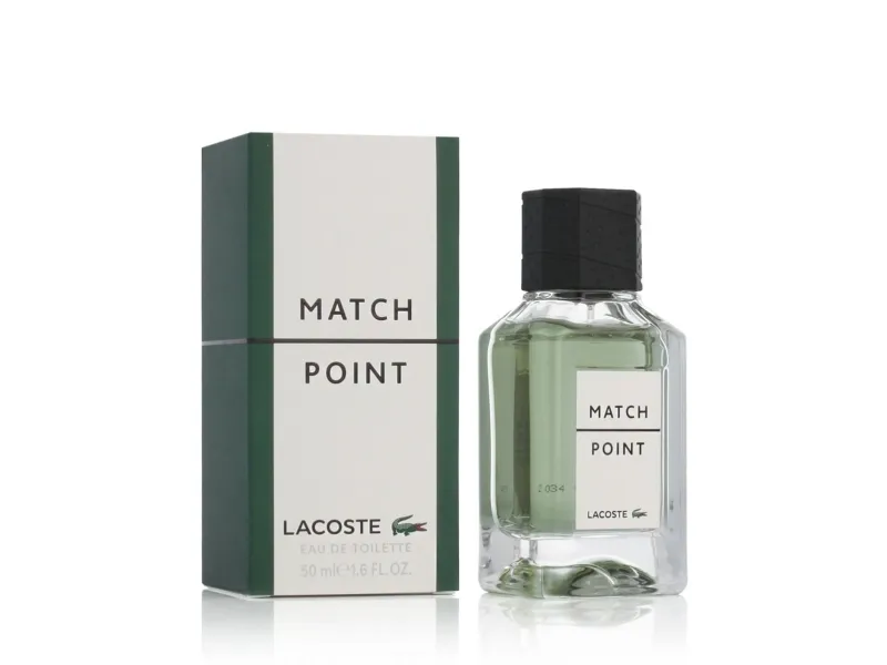Match Point fragrance: when emotion propels you to action. Breathe in the thrilling freshness of this new masculine Eau de Toilette by Lacoste, an explosive fusion of two contrasting accords. The green energy of basil and gentian bitterness combine in a breathtaking freshness. The thrilling black elegance of woody vetiver brings strength and intensity.