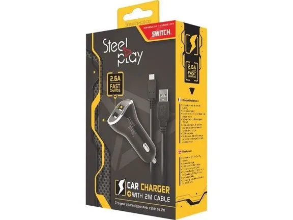 Compatible with the portable Switch console, the car lighter charger allows to charge the console during all car trips. Thanks to the 2.6A power, it provides fast charging, and the dual USB port allows you to connect 2 devices at the same time. Its 2-meter removable cable offers the freedom to continue playing from the back of the car while charging.