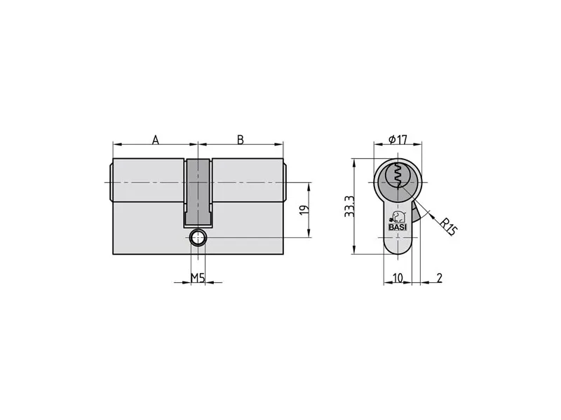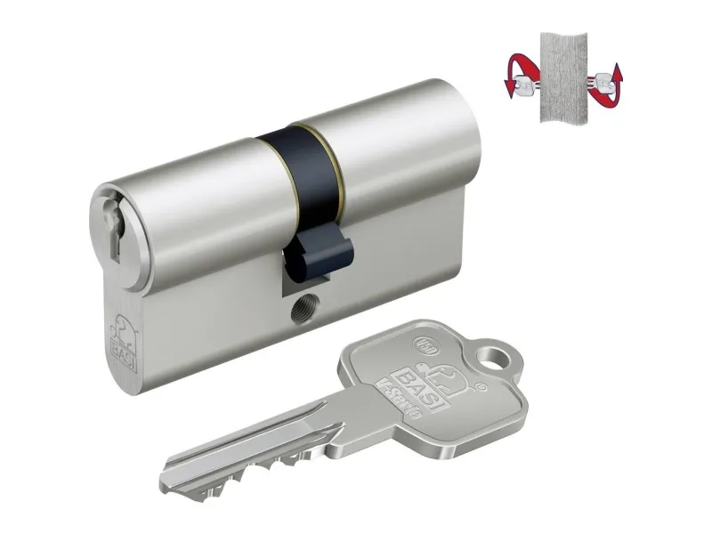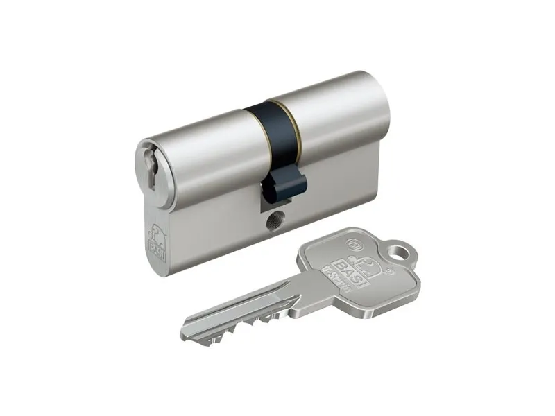 V50 - 30/30 mm N+G GL profil-dobbeltcylinder Den nye og førsteklasses V50 dobbeltcylinder er ideal for husdøre eller lejlighedsdøre. Der sker dagligt indbrud i tyske husholdninger, og ofte trænger tyve ind i huset ved hjælp af forkerte eller dårlige cylinderudstyr. V50 består af materialer i høj kvalitet, der sikrer en lang levetid og en høj slidstyrke. Profilcylinderen leveres med 3 cylindernøgler. Nøglen er udstyret med et stort hoved og sørger dermed for et godt greb. Dobbeltcylinderen er udstyret med et selvlukkende system. Det betyder, at nøglen kan bruges til flere cylinderlåse. Uanset om det er til husdøre, ekstralåse, havedåger, kælderdør eller hængelåse - når du vælger et ensartet system, behøver du i fremtiden kun en nøgle til åbning af døre. Vær derfor opmærksom på nummeret på jævnlukning, når du køber. Kernen i cylinderen er 5 låsetilholdere. Dobbeltcylinderen er også udstyret med »N+G«. Med den såkaldte nød- og farefunktion kan døre også åbnes udefra, når en nøgle blokerer dørlåsen indefra. Det er for eksempel altid muligt at åbne døren med reservenøgle, hvis man har låst sig ud. Ved BASI-cylinderens fremstilling er der lagt vægt på højeste kvalitet. Fremstilling og kontrol sker i henhold til din standard 1303:2015.