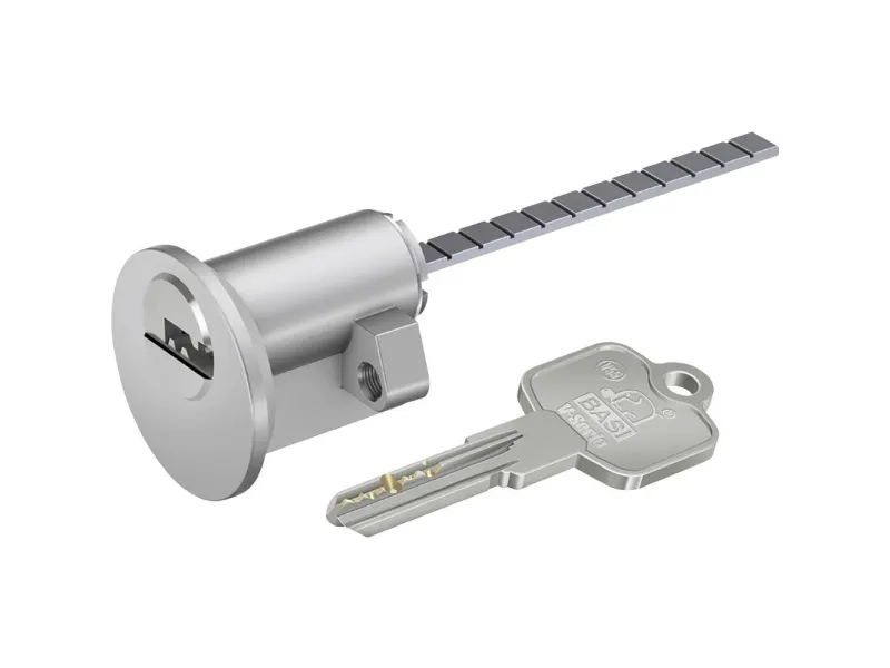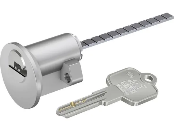 V55 - udvendig cylinder-ydercylinder, VS Den udvendige cylinder også kaldet rundcylinder egner sig til dørekstralåse på dørbladet. Den udvendige profilcylinder kan anvendes i stedet for en drejehjul på den ekstra dørlås. ideal til BASI-dørlås KS 500, samt KS 500R (sælges separat). V55 Ydercylinderen er fremstillet af materialer i høj kvalitet, som love en lang levetid og en høj slidstyrke. Naturligvis er cylinderen udstyret med alle sikkerhedskendetegn, som også har en standard-profilcylinder. Cylinderen er fremstillet af massiv messing og leveres med 5 borfordybningsnøgler. Derudover har anvendelsen af borefordybningen en pickupbeskyttelse og udboringsbeskyttelse, der giver yderligere sikkerhed til dine døre. Pickingbeskyttelsen er en afskærmning, der forhindrer låsning af låsecylinderen ved hjælp af værktøj. Ved den såkaldte Lock-picing skubbes værktøjer som for eksempel difiche ind i nøglekanalen for at nedstøde de enkelte stifter, så cylindrens rotor kan drejes. Borebeskyttelsen er en sikringsforanstaltning for at forhindre boring af cylinderkernerne. Tapperne i Kern-cylind Medbringerstangen kan forkortes individuelt og bringes til det rigtige mål. Leveringen omfatter en dækrosette til cylinderen.