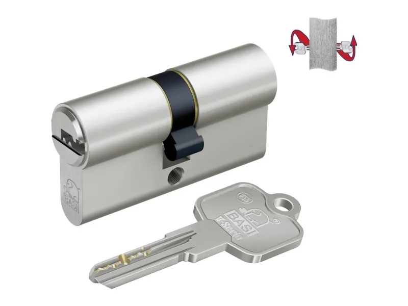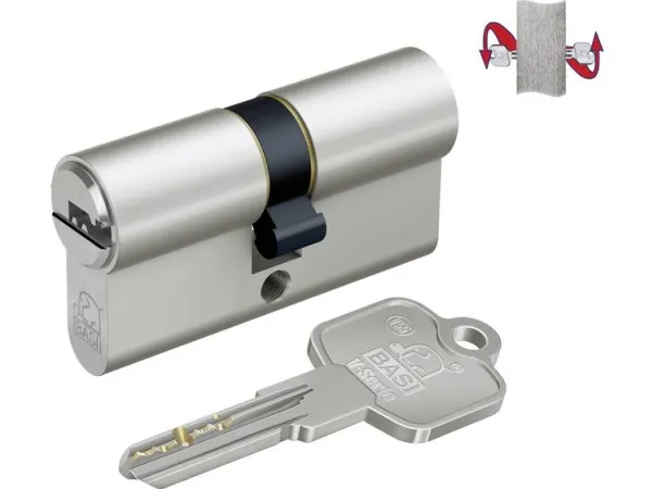 V55 - 30/35 mm N+G profil-dobbeltcylinder, VS Den nye og førsteklasses V55 profil-dobbeltcylinder egner sig ideal til husdøre eller lejlighedsdøre. Der sker dagligt indbrud i tyske husholdninger, og ofte trænger tyve ind i huset ved hjælp af forkerte eller dårlige cylinderudstyr. V55 består af materialer i høj kvalitet, der sikrer en lang levetid og en høj slidstyrke. Derudover har anvendelsen af borefordybningen en picingbeskyttelse og udboringsbeskyttelse, der giver yderligere sikkerhed for dine døre. Pickingbeskyttelsen er en afskærmning, der forhindrer låsning af låsecylinderen ved hjælp af værktøj. Ved den såkaldte Lock-picing skubbes værktøjer som for eksempel difiche ind i nøglekanalen for at nedstøde de enkelte stifter, så cylindrens rotor kan drejes. Borebeskyttelsen er en sikringsforanstaltning for at forhindre boring af cylinderkernerne. Tapperne i Kern-cylind Med den såkaldte nød- og farefunktion kan døre også åbnes udefra, når en nøgle blokerer dørlåsen indefra. Det er for eksempel altid muligt at åbne døren med reservenøgle, hvis man har låst sig ud. Profilcylinderen leveres med 5 vendbare nøgler. Dobbeltcylinderen er udstyret med et forskelligt system. Kun de 5 medfølgende nøgler passer til låsen.