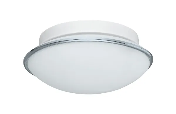 EGLO DOLLY loftlampe. Hvidt glas med krom kant. Diameter 23,5 cm. IP44. E27. Maks. 60W Eksklusiv lyskilde.