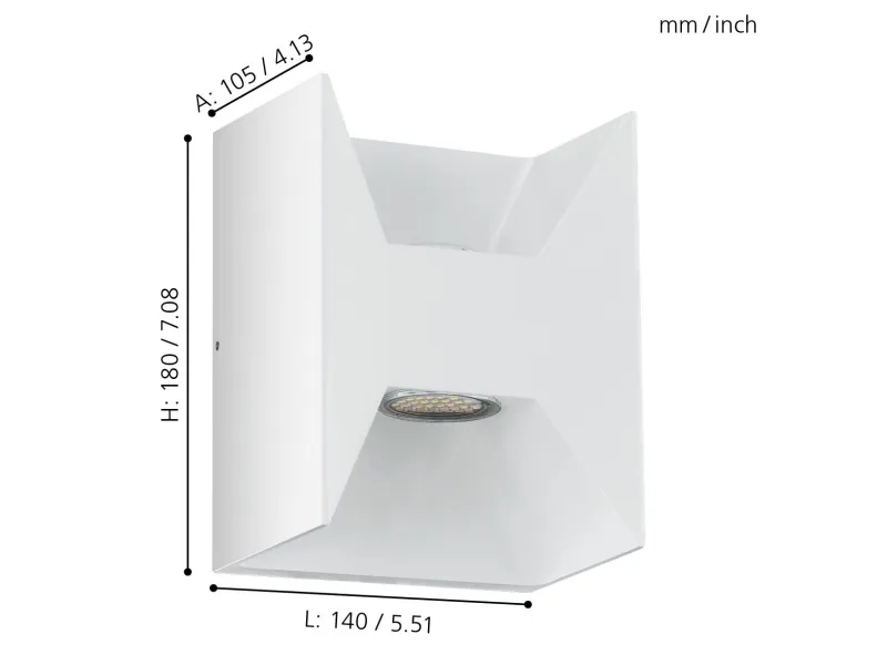 Vegglys Hvit Aluminium IP44 Inngang, Garage, Hage, Terrasse Nei Nei 2 ampuller Ja LED 5 W 2,5 W Varm hvit 140 mm 105 mm 180 mm