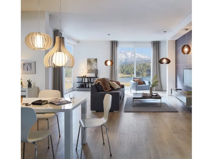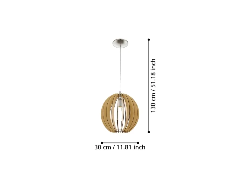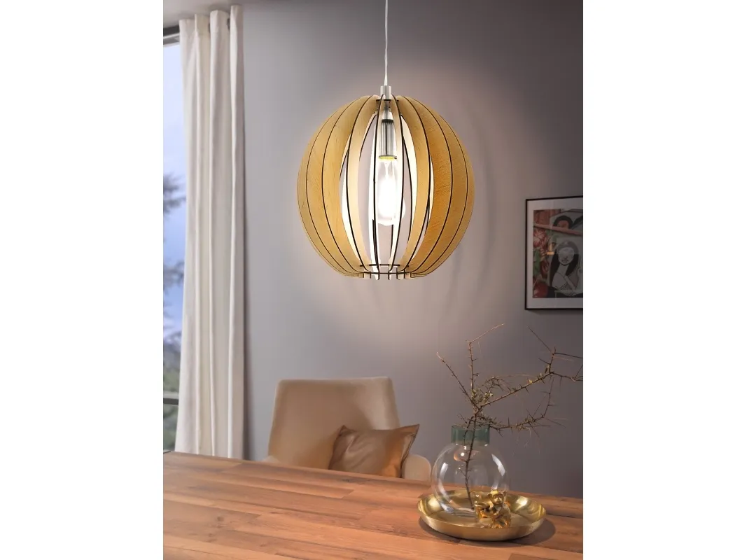 EGLO COSSANO pendel i ahornfarvet træ. Højde 130 cm, diameter 30 cm. E27, max. 60 watt. Leveres ekskl. lyskilde. IP20.