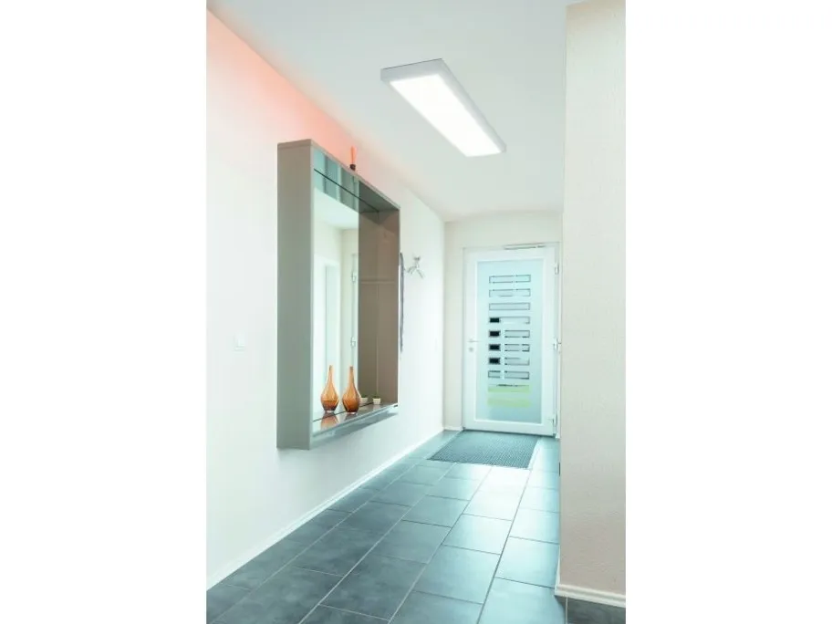 This ceiling luminaire of the SALOBRENA-A series is made of aluminium and a luminous surface of white plastic. It is available in five different sizes; an EGLO Access remote control is included.