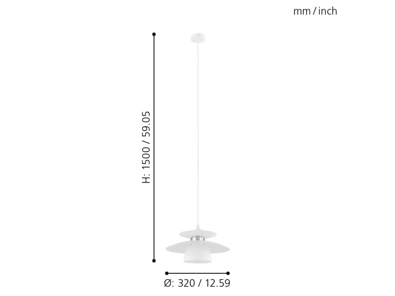 EGLO BRENDA pendel i mathvid. Højde 150 cm, diameter 32 cm. E27, max. 40 watt. Leveres ekskl. lyskilde. IP20.