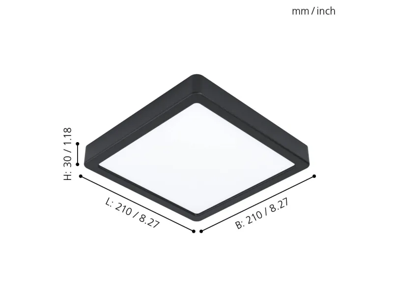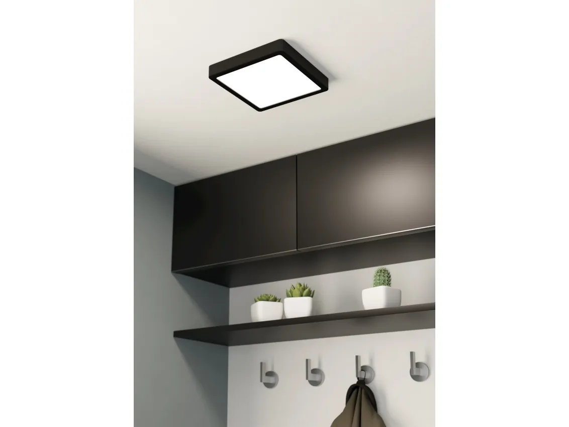 EGLO FUEVA 5 LED plafond i sort stål. L: 21 cm, B: 21 cm, H:2,8 cm. 16,5W LED, 1800LM, 3000K. Dette produkt indeholder en lyskilde med energieffektivitetsklasse: F