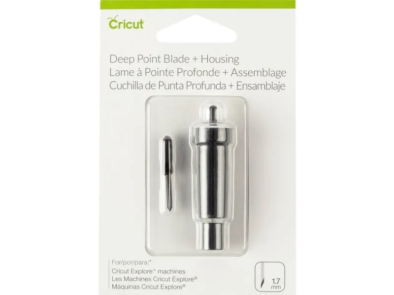 The Cricut Deep-Point Blade + Housing makes it easy to cut a wider variety of materials for your projects. The Deep-Point Blade has a steeper blade angle and harder, more durable steel. Use it with your Maker or Explore machine to create personalized wall calendars from chipboard, use rubber sheets to cut your own stamps, or make custom magnets.
