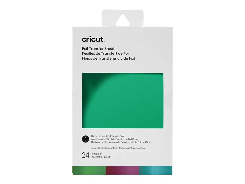 Cricut Jewel Sampler - foil transfer sheet - 10.1 x 15.2 cm - 24 ark - akvamarin, aubergine, smaragd