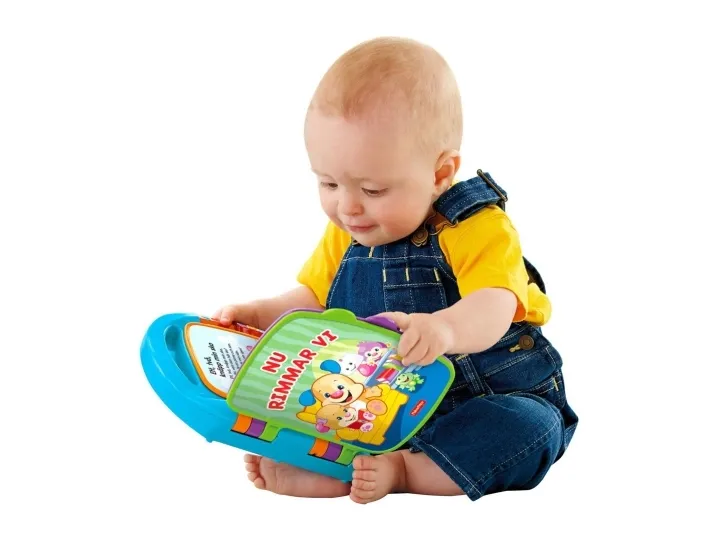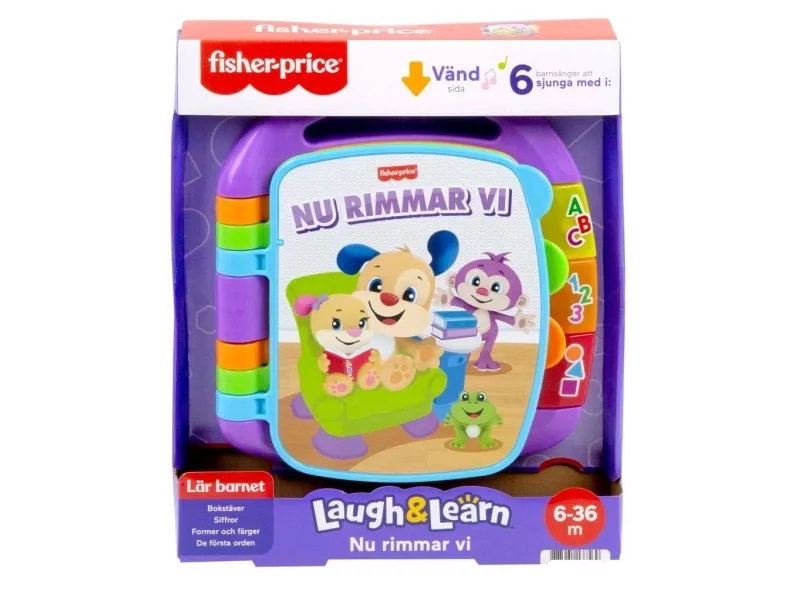 Åpne en verden av spennende og morsom læring for barnet med musikkboken Laugh & Learn® Fortelling på rim. Når barnet blar i boken, aktiveres morsomme barnesanger som "Kakemann" og "Ro, ro, ro din båt" akkompagnert av fargerike tegninger med Valpen og Søs. Og når dere sammen danser og beveger dere til musikken, lærer barnet å telle, sine første ord, bokstaver, tall, om former og mer. Med det praktiske bærehåndtaket kan du ta med Fortelling på rim når du skal ut på tur med det lille nurket ditt. Tidlig læring – lekende lett. Tall og bokstaver: Når barnet trykker på ABC- og 123-knappene, hører det bokstaver og tall som passer til hver side, noe som hjelper barnet med å utvikle lesegleden. Farger og former: Når barnet trykker på knappen med former og farger, lyser den opp, og barnet hører uttrykk som forteller om de forskjellige fargene og formene det ser.Med babyens favorittvenner fra Laugh & Learn®, inkludert Valpen og Søs6 klassiske barneregler som babyen kan høreLær telling, første ord, bokstaver, tall, former og mer!3 lysende knapper for bokstaver, tall og formerSider som er lett å bla i, og som bidrar til å utvikle motoriske ferdigheterEt flott håndtak gjør det enkelt å ta med på farten