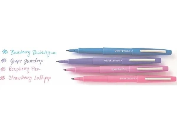 Pen, Paper Mate® Flair Pen med filtspids i fine pastelfarver. Blækket er vandbaseret og trænger ikke igennem papiret. Det tørrer hurtigt og klatter ikke, og pennen er ideel til både at tegne og skrive noter. Pennen har en medium spids og en stregbredde på 0,7 mm. Den kan leveres i assorterede farver. Best.enhed: æske a 12 stk.