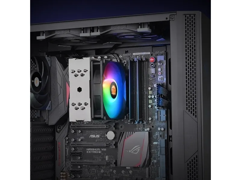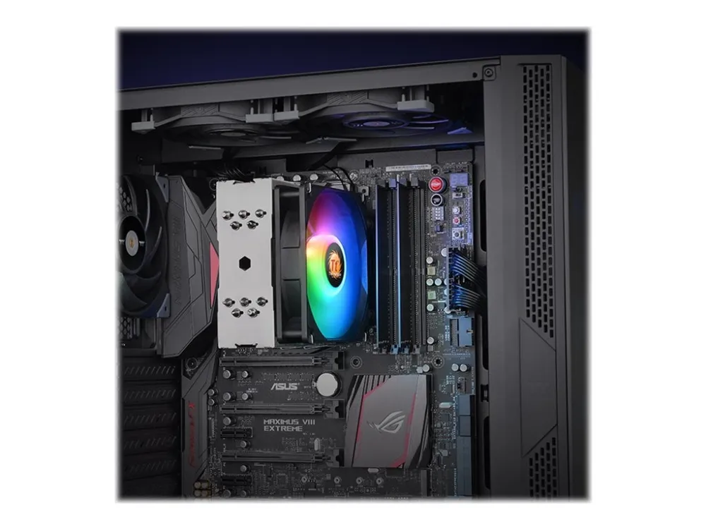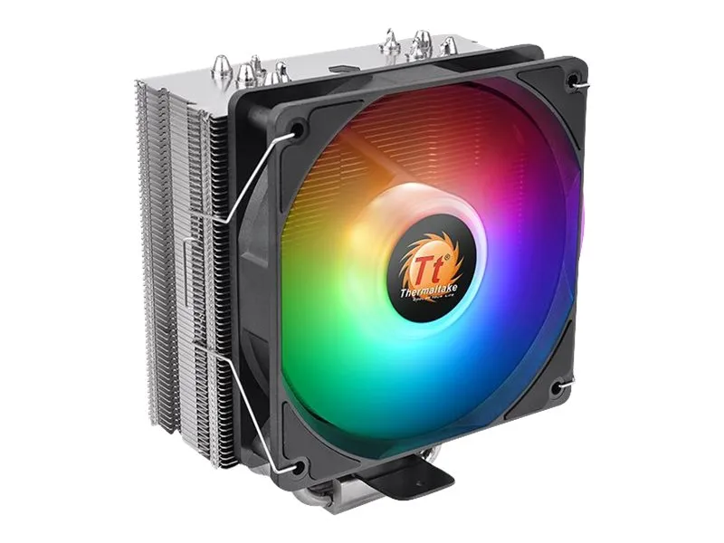 UX210 ARGB Lighting CPU Cooler comes with high airflow blades and U-shape copper heat pipes. Built-in ARGB LEDs delivers a vibrant lighting effect that also supports motherboard sync. Compatible with universal Intel and AMD socket.