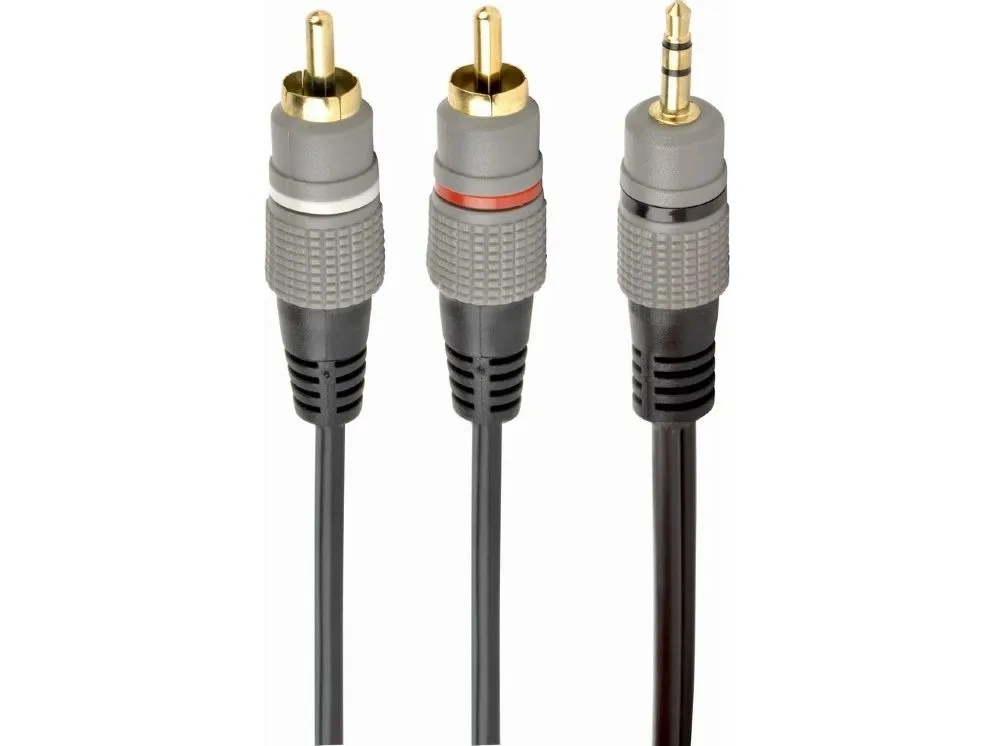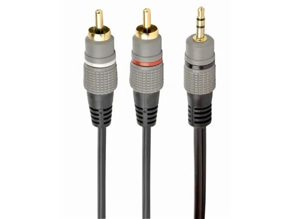 The Gembird Cablexpert Select Plus Series audio cable offers performance with its dual RCA connectors and 3.5 mm stereo male connector. Designed for reliable connections, this cable ensures high-quality audio transmission for a variety of devices. With gold-plated connectors, the cable reduces signal loss and provides a clearer sound experience. Compliance with ISO 9002 and RoHS standards reflects high-quality manufacturing processes and environmental regulations.