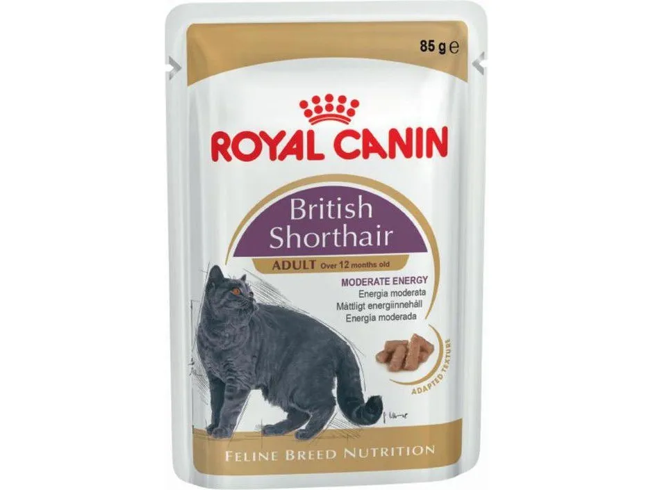ROYAL CANIN® British Shorthair Adult in Gravy is specially formulated with all the nutritional needs of your British Shorthair cat in mind. The British Shorthair typically has a sturdy, heavy and muscular body. As a naturally solid and powerful cat, your cat’s weight should primarily derive from muscle instead of fat. Therefore, the right nutrients (as well as correct portion sizes) are essential. ROYAL CANIN® British Shorthair Adult in Gravy contains a moderate energy level and an adapted fat content (3.2%) for effective weight management. ROYAL CANIN® British Shorthair Adult in Gravy contains a specific balance of nutrients, including a variety of vitamins, to not only maintain a healthy and well-nourished coat, but also to support and maintain healthy skin. To cater to each cat’s individual preferences, ROYAL CANIN® British Shorthair Adult is also available as dry food, with crunchy and tasty kibbles. If you’re considering mixed feeding, simply follow our feeding guidelines to ensure your cat gets an accurate amount of both wet and dry food for optimal benefit.