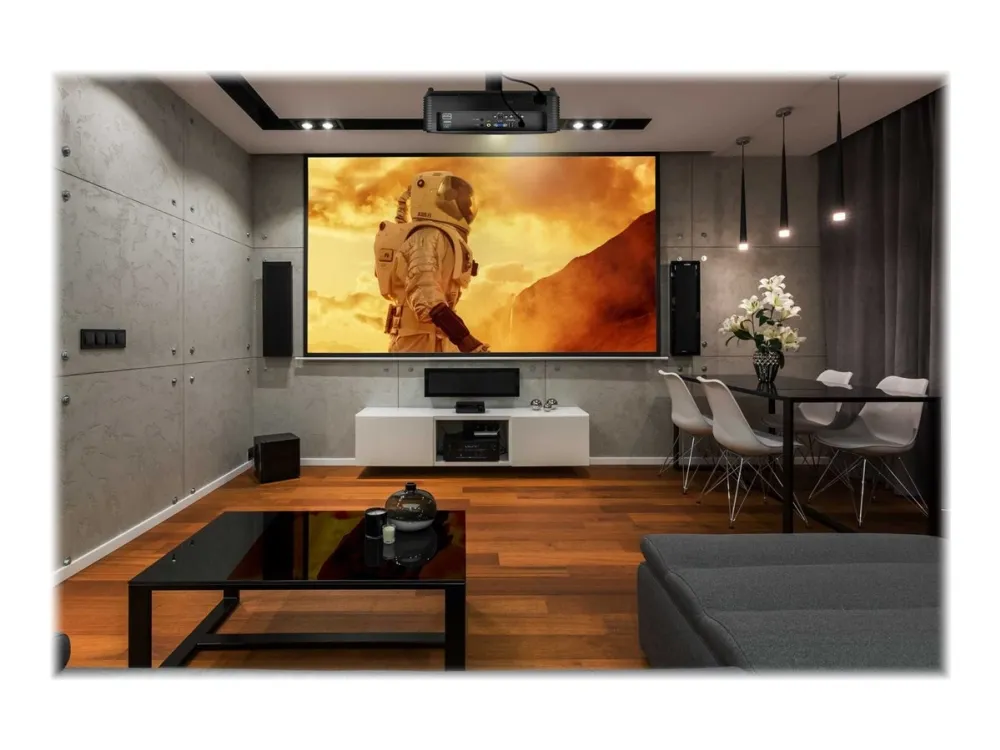 An integrated speaker provides powerful sound and a HDMI input enable connection to multiple devices such as set-top boxes, games consoles and HDMI dongles. The compact form factor, 1.55-1.73:1 throw ratio, 1.1x zoom and 30,000:1 contrast ratio provide flexible setup for easy enjoyment of live sports, gaming, and movies at image sizes up to 300 inches.