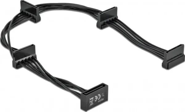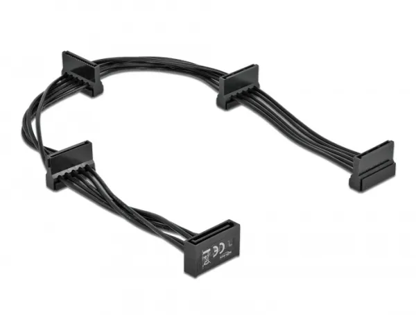 This power cable can be connected to 4 SATA devices and supplies power via one SATA 15 pin port of a power supply.