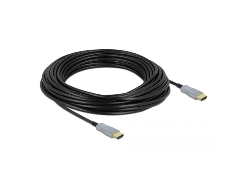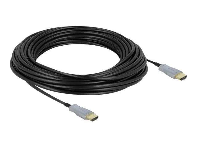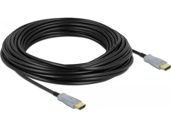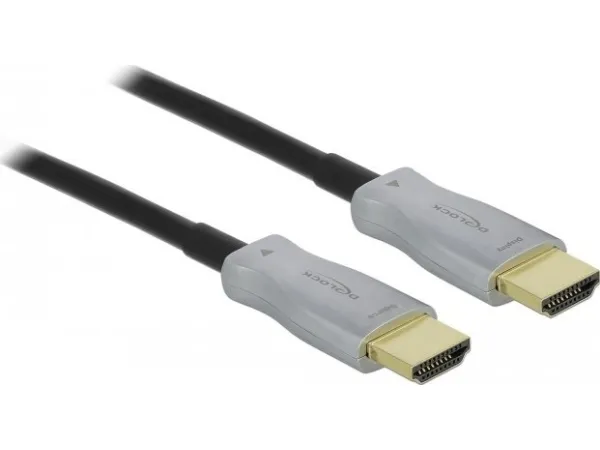 This cable by Delock is used to connect devices with a HDMI interface, such as monitors or TVs, to a PC or a laptop. This active optical cable is particularly thin and can transmit signals without loss over longer distances.