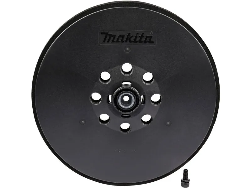 The Makita 9" Round Sanding Backing Pad (Hard) provides efficient drywall sanding applications. Made of high quality, durable rubber for long life. Hook and loop design for quick and easy abrasive paper changes.