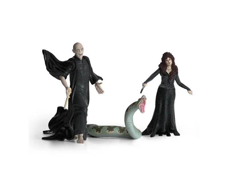 Lord Voldemort ser rasende ut, og det lover aldri godt for noen. Ingen legger seg ustraffet ut med denne mektige, svartkledde trollmannen. Spesielt ikke når han har med seg de hengivne ledsagerne sine, Nagini og den farlige dødseteren, Bellatrix DeMons. De vifter allerede med tryllestavene sine. Den forheksede slangen Nagini åpner samtidig gapet og flekker de store gifttennene. Hva pønsker de på? Og hvem kan stoppe dem?