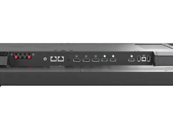 2 x HDMI-inngang - bunn 2 x DisplayPort-inngang - bunn HDMI-utgang - bunn DisplayPort-utgang - bunn Lydutgang - bunn LAN-inngang - bunn LAN-utgang - bunn Infrarød inngang/utgang - bunn USB 2.0 oppstrøms - bunn USB 2.0 nedstrøms - bunn Service - bunn 2 x ekstern høyttaler - bunn RS-232C-inngang - side
