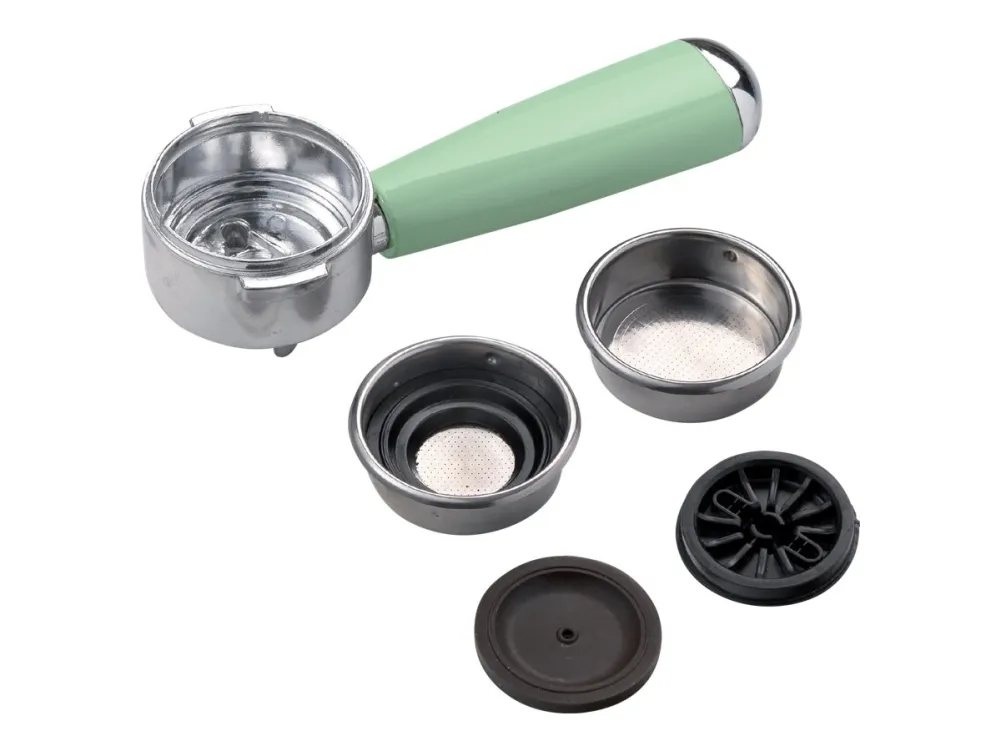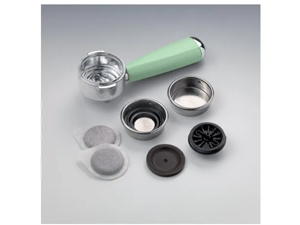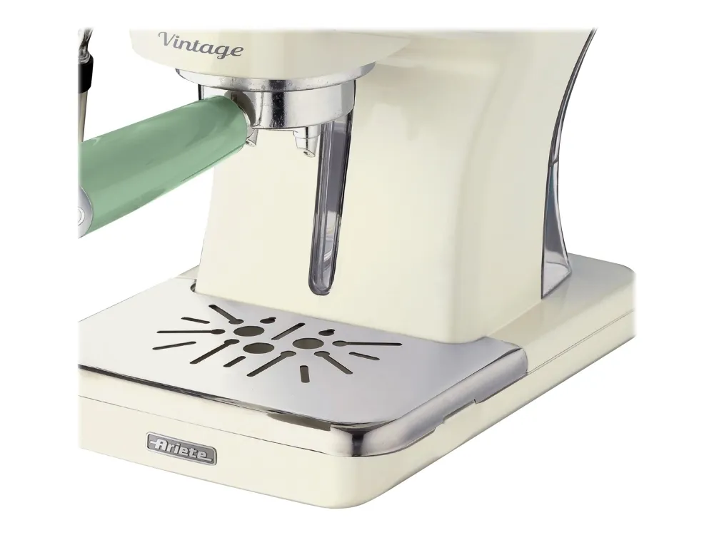 Espresso machine with an elegant and stylish design in vintage style. With its 900W power, 15 bar pressure, filter holder for pods and powder (1 and 2 cups), removable cup holder and drip tray, it lets you prepare coffee and cappuccino at home, intense and creamy like the ones you can taste in a bar.