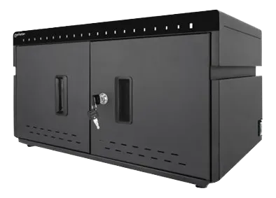 Thieves and vandals don’t stand a chance against the sturdy, durable metal housing of this Charging Cabinet. Lock it securely with the included 2-piece key set and give access only to authorized personnel. Its vertically split door requires less space to open in confined areas. A built-in fan and ventilation slots dissipate heat and keep all devices cool. Rubber feet prevent the Cabinet from slipping on any surface.