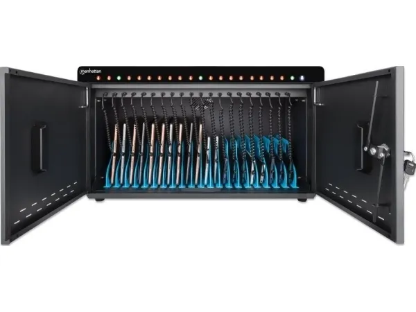 Visitors, guests and employees bring their mobile devices to all sorts of venues. Give your people a way to charge the drained batteries of their smartphones or tablets with the 20-Port Desktop Charging Cabinet - 360 W from Manhattan. It's the ideal charging solution for restaurants, schools, gyms, doctor’s offices, universities, hotels, car rental agencies and more.