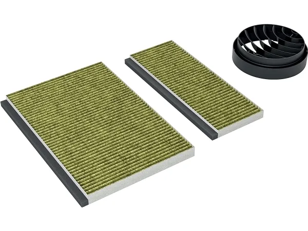 Ekstra tilbehør Til recirkulation Velegnet til emhætter med fladt design. CleanAir Plus filter har en levetid på mindst 12 måneder Anti-fisk: fjerner lugten af fisk effektivt Anti-pollen funktionalitet: filtrerer 99% af luftbåren pollen neutraliserer allergener som fanges i filteret Indeholder 2 Clean Air Plus filtre og en diffusor til harmonisk drift.