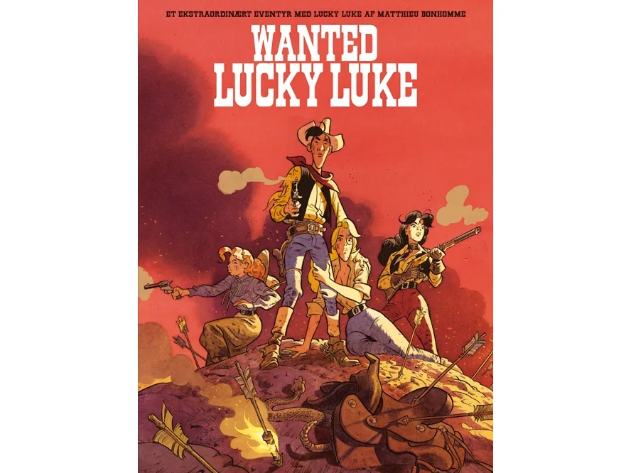 ”I kærlighed er det alle mod alle. Den første, der kysser ham ...” Efter at være blevet overfaldet af en dusørjæger går det op for Lucky Luke, at nogen har sat en pris på hans hoved. Dusøren er høj – og der er tilsyneladende mange, der vil inkassere den. Han når ikke at tænke nærmere over det, før han må hjælpe tre cowgirls i nød – som ikke er helt sikre på, om han er en gentleman eller en farlig forbryder, da han tilbyder at eskortere dem til byen Liberty med deres hjord. Undervejs venter dem ikke så få overraskelser, for alle og enhver er åbenbart ude efter Lucky Luke. Da de når frem til byen, ender det hele i et inferno af cabaretdans, saloonspektakler, gammelkendte skurke, kavaleriets ankomst ... samt længselsfulde blikke. Oven i det hele må Lucky Luke finde sig i at blive udsat for hån, spot og latterliggørelse! Fem år efter sit første ekstraordinære eventyr med Lucky Luke, Manden der skød Lucky Luke, er den franske tegneserieskaber Matthieu Bonhomme (f. 1973) tilbage med et nyt storslået album om cowboyen, der er hurtigere end sin egen skygge. Pressen skrev om Manden der skød Lucky Luke: ”Fornem hyldest til cowboyen over dem alle ... Drama for alle pengene.« – Weekendavien ”Matthieu Bonhomme rammer plet!” – Berlingske ”Dygtigt udført med stor kærlighed.” – Jyllands-Posten