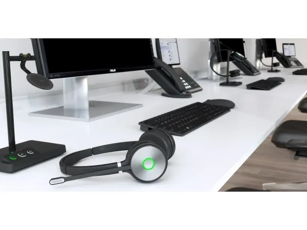 Yealink WH62 Dual-hodesettet er en allsidig lydløsning som er utformet for å oppfylle kravene til moderne profesjonelle. Med trådløs DECT-teknologi får brukerne opptil 160 m mobilitet, slik at de kan bevege seg fritt rundt på kontoret uten problemer med ledninger. Hodesettet har et oppladbart batteri med lang levetid og opptil 125 timers standby-tid, slik at du alltid er klar for neste samtale. For de som prioriterer lydkvalitet, leverer WH62 Dual med stereolydutgangsmodus, noe som gir klar og tydelig lyd for både samtaler og multimediebruk. On-ear-hodetelefonene er designet for komfort, noe som gjør dem egnet for langvarig bruk under lange konferanseøkter. Enten du samarbeider med kolleger eller har kontakt med kunder, er WH62 Dual-hodetelefonene utviklet for å forbedre kommunikasjonsopplevelsen din.