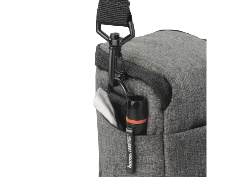 Batterier, minnekort, frontlomme, 2 x side pocket