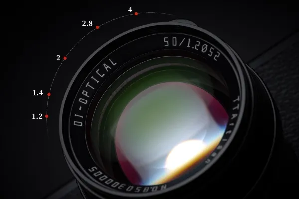 How excellent F1.2 is: - Light intake of F1.2 is 1.4 times F1.4 - Light intake of F1.2 is 2.8 times F2 - Light intake of F1.2 is 5.5 times F2.8 - Light intake of F1.2 is 11.1 times F4