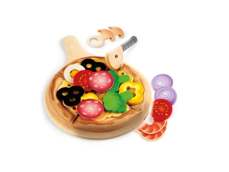 Få smag for italiensk madlavning med dette eminente Hape Perfekt Pizza Legesæt, med masser af fyld. Indeholder en pizzabund, der kan skæres i stykker, et pizzahjul, en spade, mange stykker fisk og skaldyr, grøntsager og andet pizzafyld og en pizzaovn, der også fungerer som pizzaæske. Med glatte, afrundede kanter der er perfekte til, at små fingre kan gribe om dem. Godt til udvikling af finmotorik, sprog og sociale færdigheder. Indeholder i alt 29 dele.