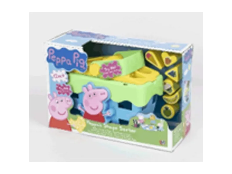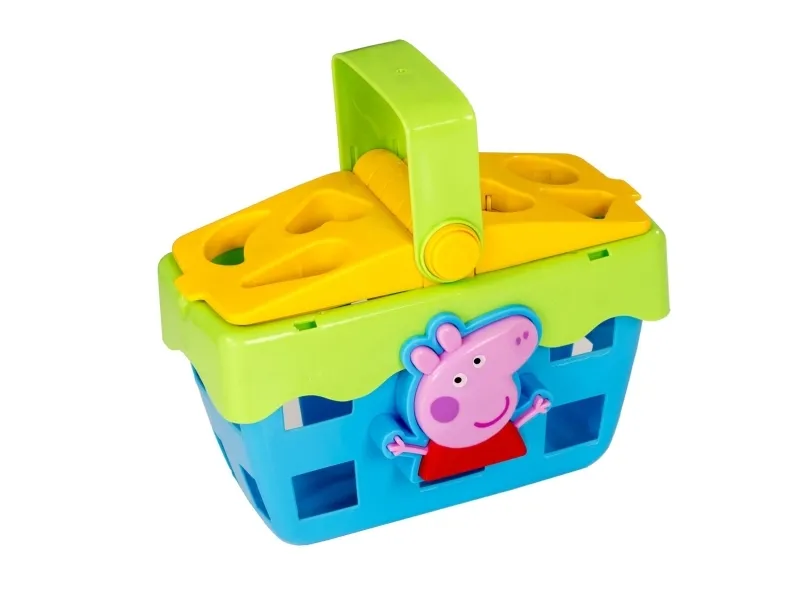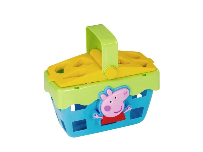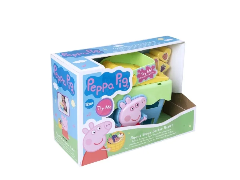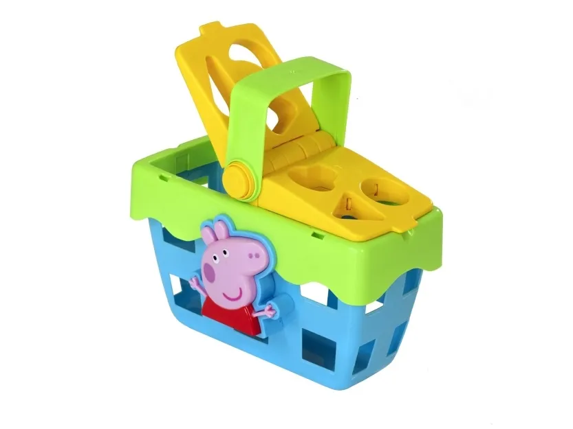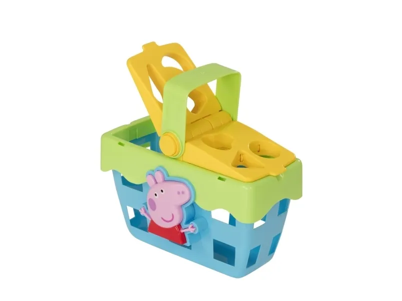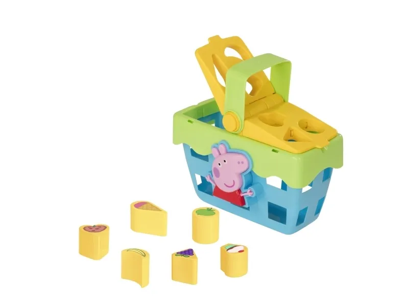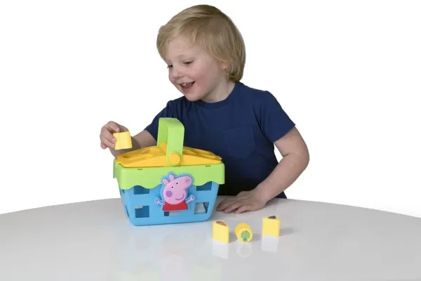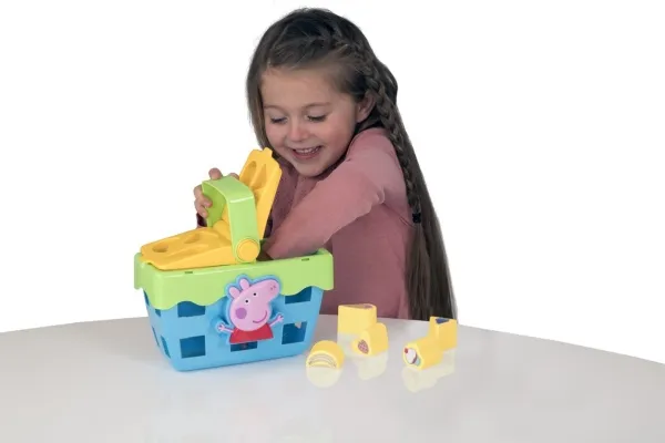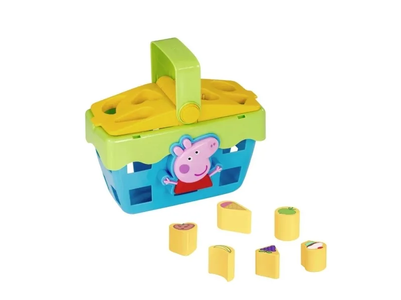 Ta med deg piknik-kurven din og du vil oppdage at den også kan brukes til å sortere forskjellige former! Trykk på solen på forsiden for å aktivere Peppa Gris’ temasang. Du kan putte former og mat inn i de riktige hullene og bli belønnet med en morsom Peppa-lyd: ’grynt’, ’hihihi’. Settet inneholder 6 forskjellige former med mat.