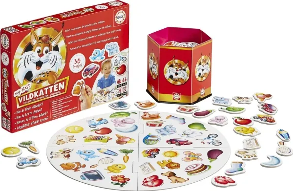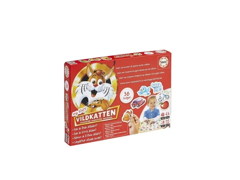 My First Villkatten er et morsomt og underholdende observasjonsspill i juniorutgave. Det samme som du kjenner fra det vanlige Villkatten-spillet, men her er det bare 36 motiver å velge mellom, noe som gjør det mye mer håndterlig for barn. Spillet handler om å snu et bildekort og finne motivet på spillebrettet så raskt som mulig. Dette krever både oversikt og konsentrasjon. Spilleren med flest bildekort vinner spillet. Brikkene passer for mindre barn, og er laget i god og sterk kvalitet. Esken inneholder: bildekort, oppbevaringsboks, spillbrett i 4 deler og spilleregler. Spilletid: 10 min. Fra: 2-4 år: Antall deltakere: 2-4