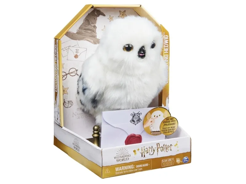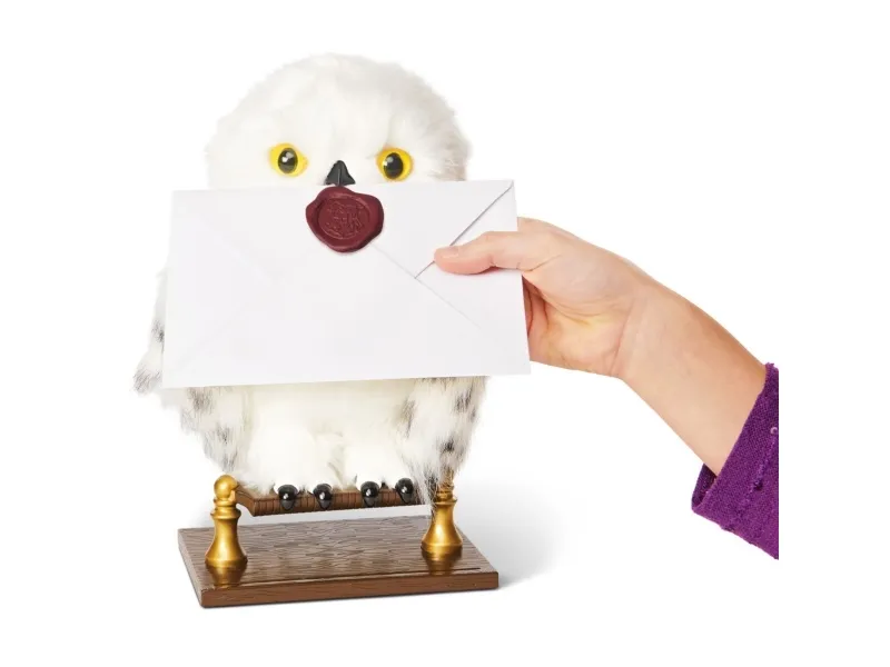 Includes: 1 Enchanting Hedwig, 1 Perch, 1 Hogwarts Envelope, 1 Comb, 1 Instruction SheetWizarding World Harry Potter, Enchanting Hedwig Interactive Owl with Over 15 Sounds and Movements and Hogwarts Envelope, Kids Toys for Ages 5 and up. Battery type: AA. Product colour: White