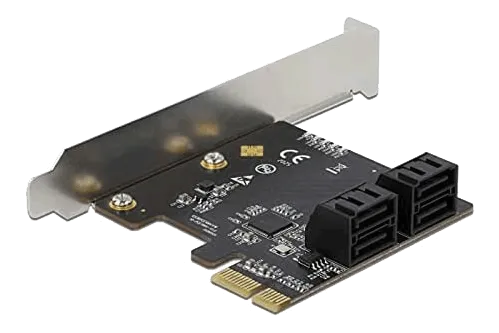 The PCI Express card by Delock expands a PC by four internal SATA ports. Different devices such as SSDs, hard drives, DVD-drives etc. can be connected to the card.