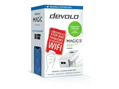Devolo Magic 2 WiFi Next. Maximum data transfer rate: 2400 Mbit/s, Networking standards: IEEE 802.11a, IEEE 802.11ac, IEEE 802.11b, IEEE 802.11g, IEEE 802.11k, IEEE 802.11n, IEEE 802.11r,..., Ethernet LAN interface type: Gigabit Ethernet. Power consumption (typical): 8.9 W, Power consumption (standby): 3.1 W, AC input voltage: 196 - 250 V. Product colour: White, Antenna type: Internal, Country of origin: Germany. Mobile operating systems supported: Android, iOS. Width: 76 mm, Depth: 40 mm, Height: 152 mm