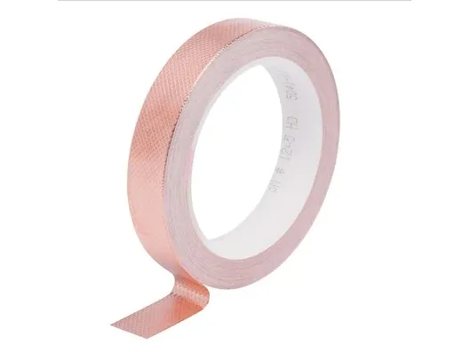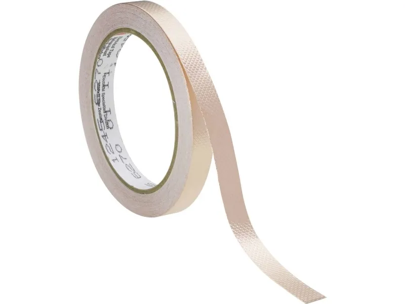 Afskærmningstape, kobber folie 3M afskærmningstape nr. 1245 består af en præget kobberfolie som bæremateriale med et ikke ledende akrylklæbestof. Særlige kendetegn: Brandhæmmende iht. UL · Akrylklæbestof resistent mod opløsningsmidler. Anvendelse: Afledning af statisk opladning · Afskærmning af elektromagnetiske felter.