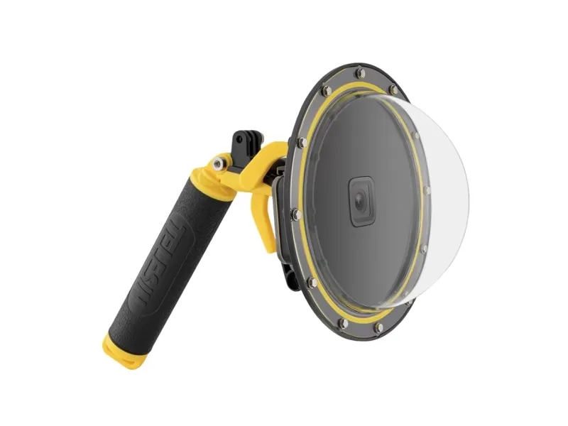 The practical housing by Telesin designed for the GoPro Hero 13 / 12 / 11 / 10 / 9 camera will allow you to take original shots above and below the water. Not only can it float above water, but it is also waterproof to a depth of up to 30 meters. It provides a wide field of view and a light transmittance of 93%. There is also a storage compartment inside its non-slip handle where you can store small items.