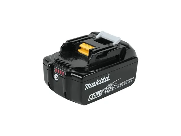 Li-Ion batteri til 18V LXT maskiner Kraftig 6,0 Ah Li-Ion batteri med batteriindikator. Brukes med 18V LXT® Makita maskiner. Ideel til kraftkrevende maskiner. Ladetid ca 55 min med hurtiglader.