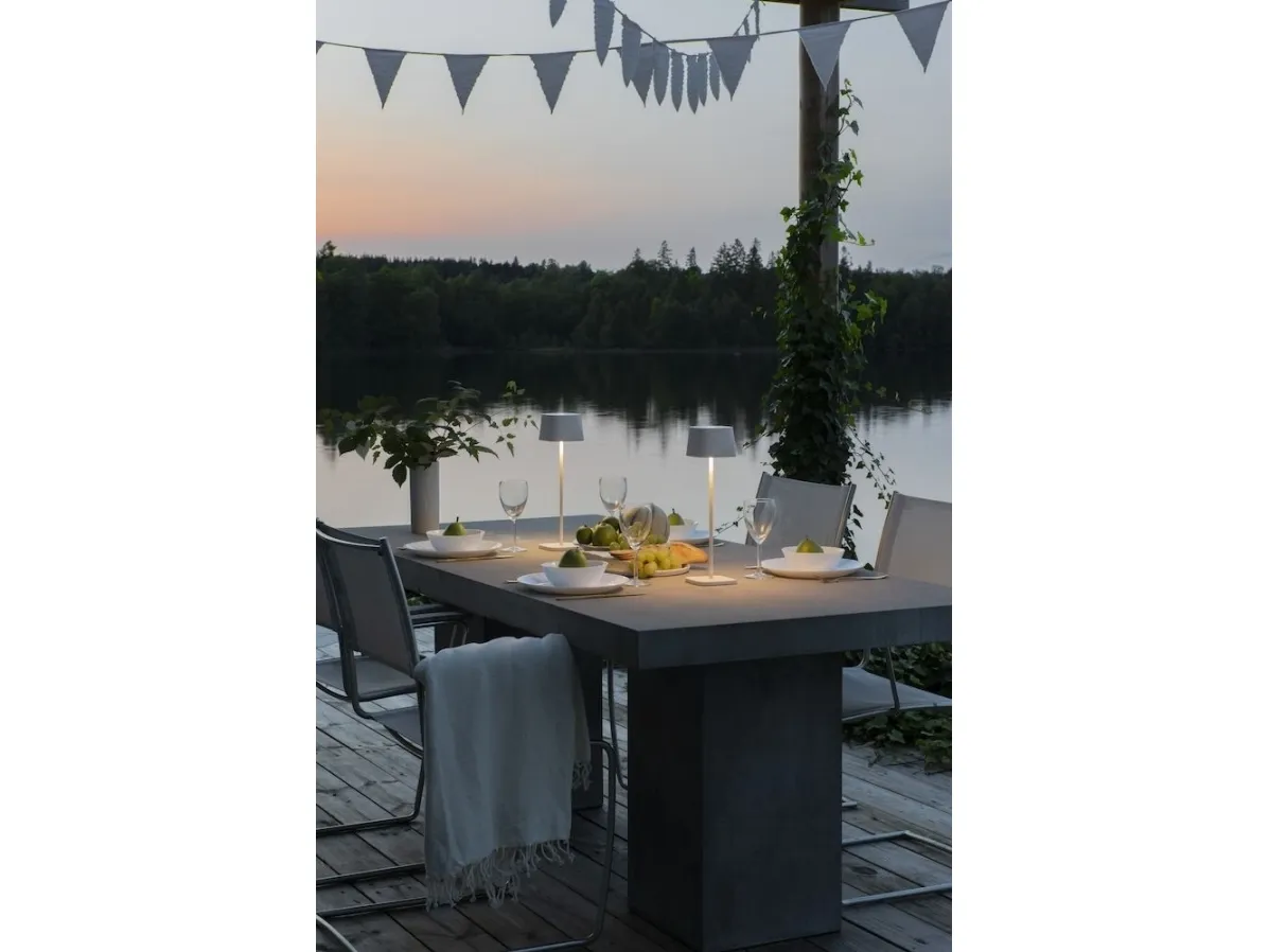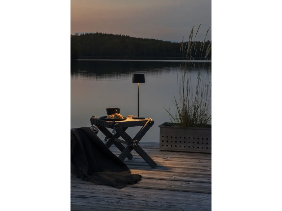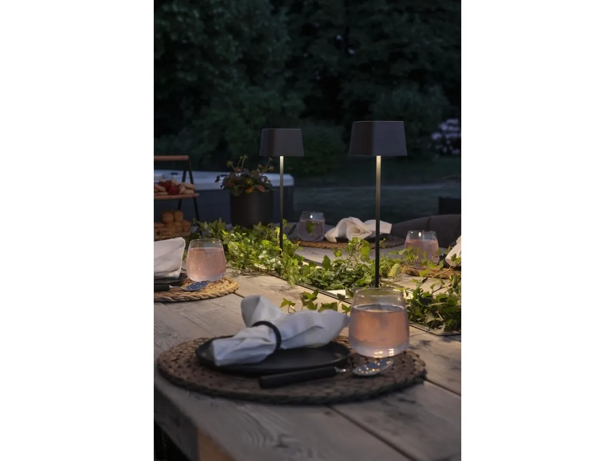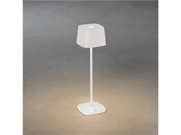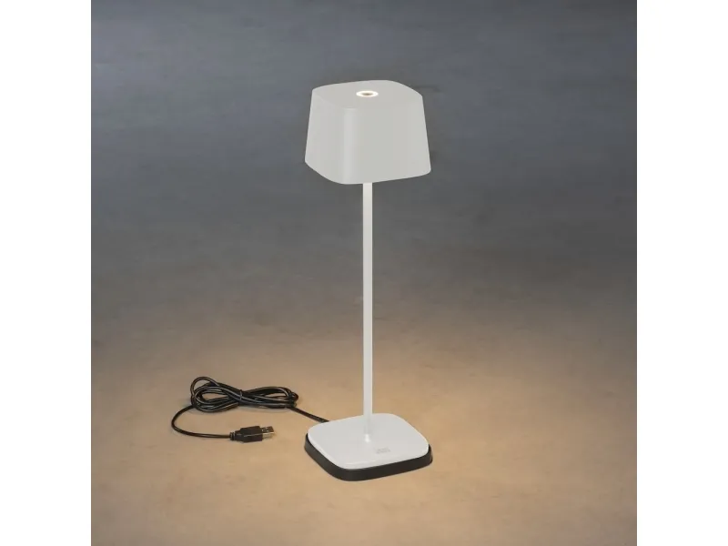 Capri LED USB-bordlampe USB design bordlampe Ren forsatilitet - til terrassen, haven, camping, outdoor og indendørs Førsteklasses forarbejdning - ramme af aluminium Tænd/sluk-funktion Trinløs dæmper på 100 % (180 lumen) - 5 % (10 lumen) Farvetemperatur kan indstilles i 2 trin: 2700k og 3000k Stærkt batteri: Litium-ion-batteri 18650 – 2x2200 mA Driftstid: 9 timer ved 100% lys og 20 timer ved 50% USB-oplader og kabel medfølger