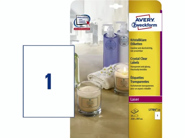 • Giver et stilfuldt og næsten usynligt udseende • Holdbare overfor olie og snavs og kan ikke rives i stykker • Til glas, polerede overflader samt metal og plastik • Ideelle til produktetiketter • Design og print nemt med GRATIS skabeloner |