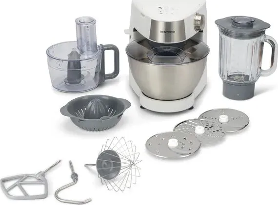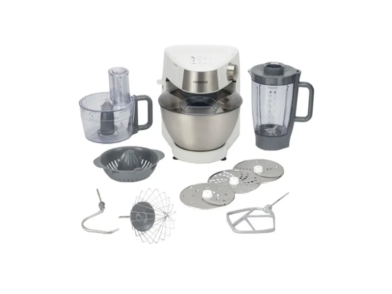 Different jobs require different tools. You're always prepared with a set of three sturdy tools. Prospero+ comes with a whisk, dough hook and our signature K-Beater – a true baking all-rounder.Kenwood Prospero+. Bowl capacity: 4.3 L, Product colour: Stainless steel, White, Control type: Rotary. Bowl material: Stainless steel, Housing material: Plastic. Power: 1000 W. Width: 250 mm, Depth: 280 mm, Height: 240 mm. Warranty period: 2 year(s)