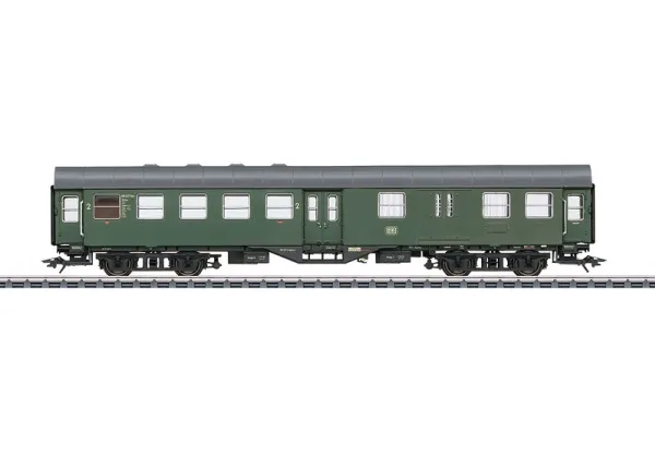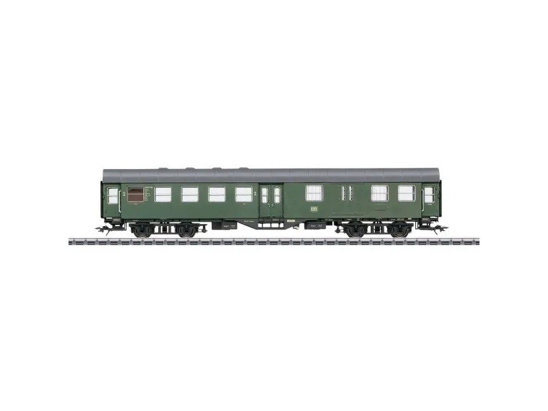 Prototype: German Federal Railroad (DB) 4-axle passenger car. Type BD4yge "Rebuild Car", 2nd class with a baggage area. Version around 1959 in "Bottle Green".