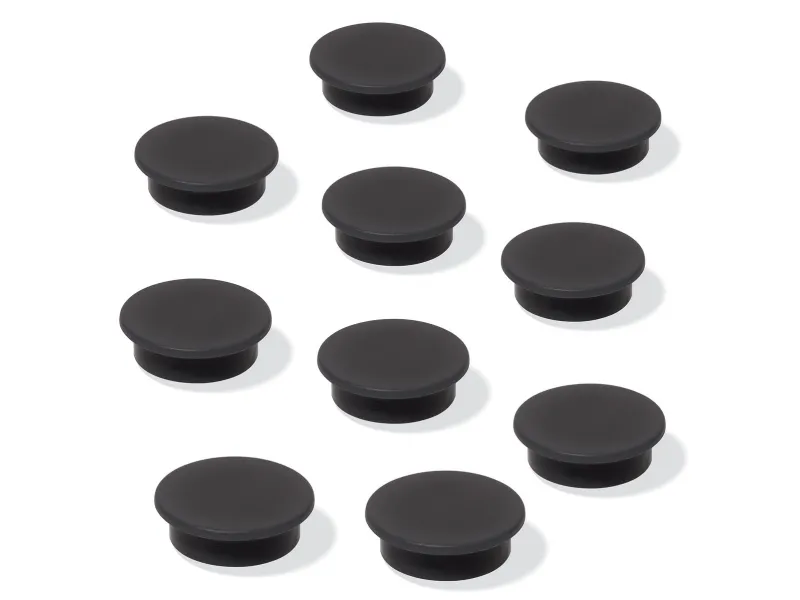 The SIGEL magnets are ideal for attaching presentation cards and papers to metallic, magnetic surfaces such as the Meet up whiteboards or a fridge (not suitable for magnetic glass boards). Thanks to the coating on the back, they do not scratch the board surface. The magnets hold approx. 4 sheets (A4, 80 gsm). Box contents: 10 black magnets, Ø 25 mm.
